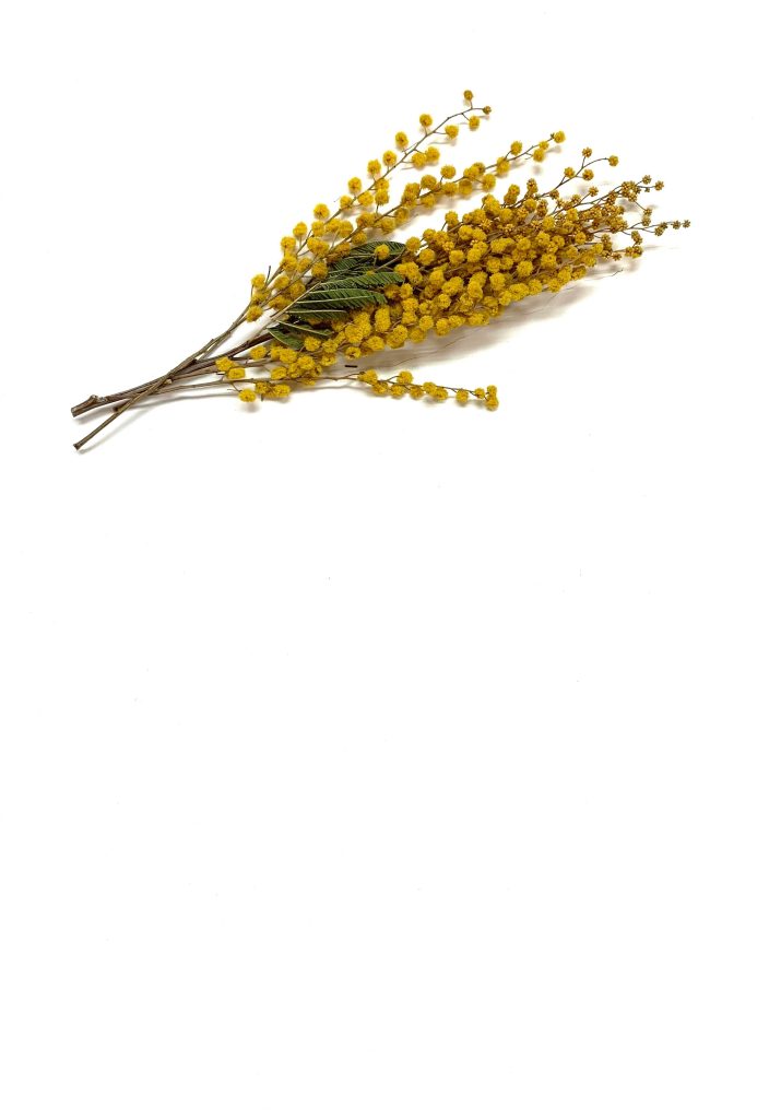 A savoir : le mimosa, quand il passe, se rétracte. Ses petites boules jaunes rétrécissent et foncent. Vous pouvez alors les sortir de l’eau et suspendre les tiges la tête en bas pour les faire sécher. Elles pourront alors se conserver plusieurs années en gardant leur couleur ocre.