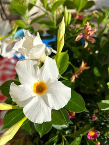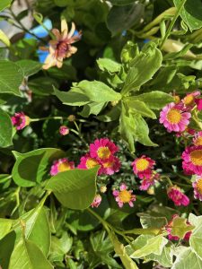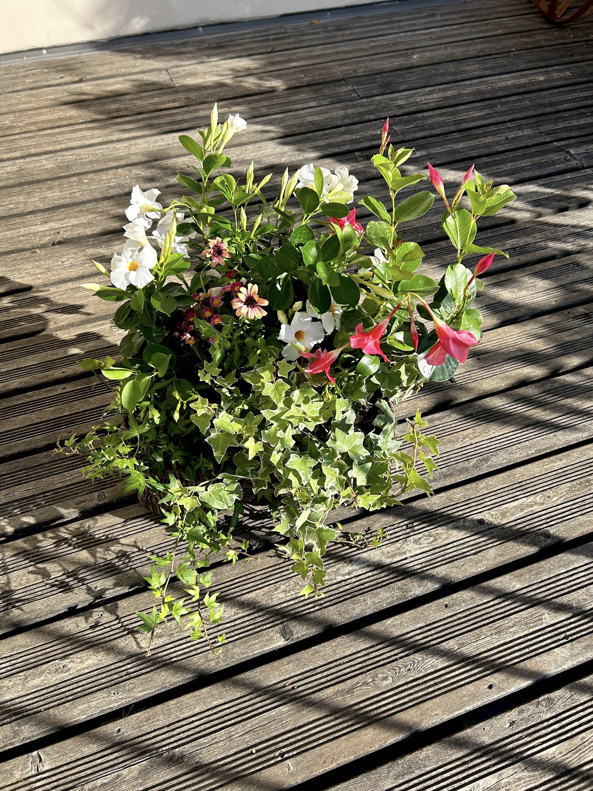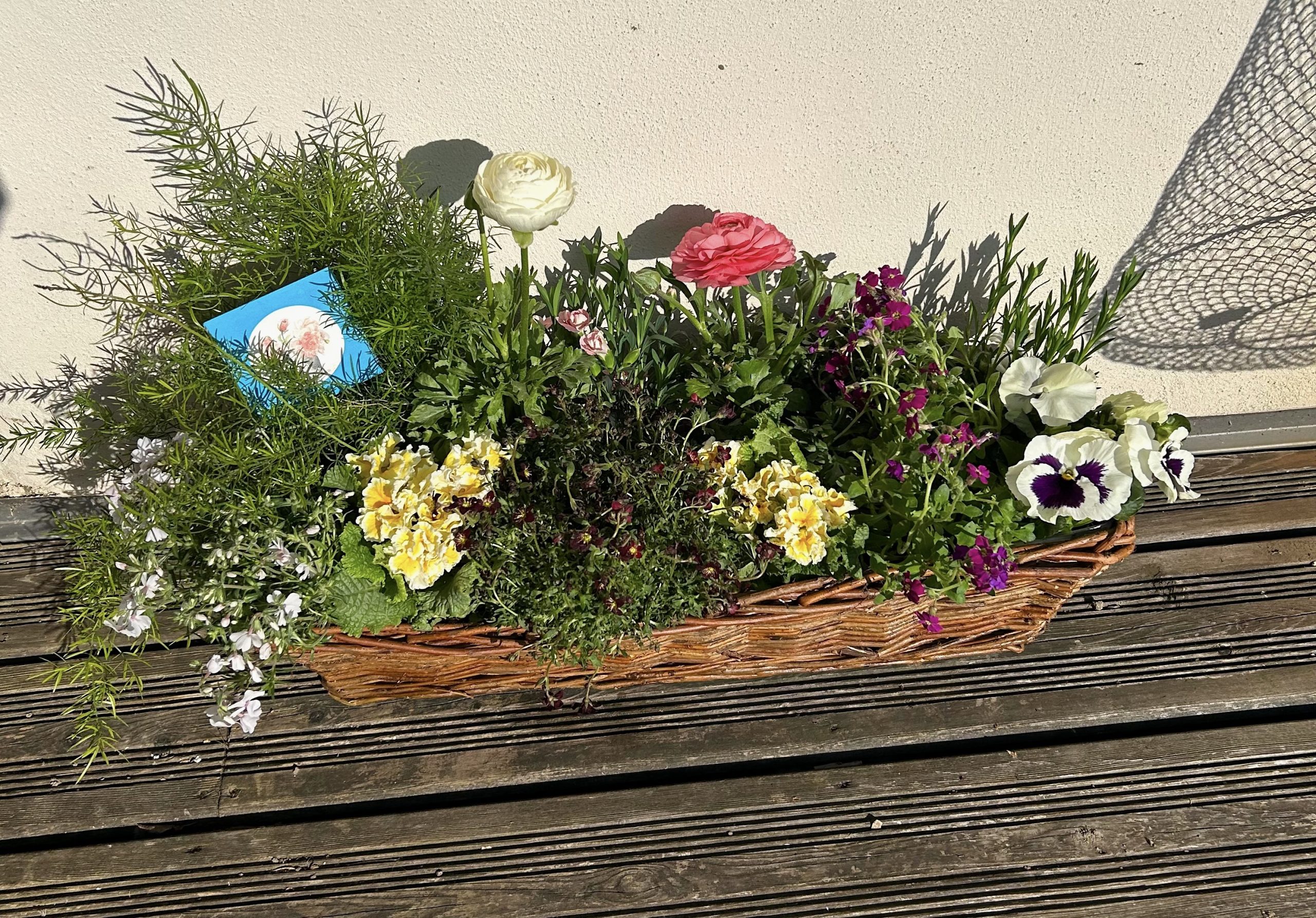 Pour une composition à déposer et à laisser sur place, je sélectionnerai pour vous des plantes fleuries de saison et locales, adaptées au climat du moment.