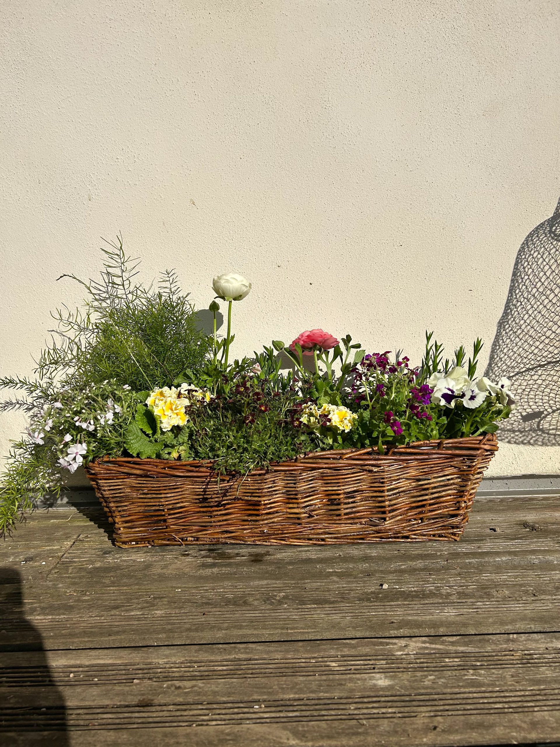 | Contenant | Corbeille ronde en osier, Jardinière rectangulaire en osier |