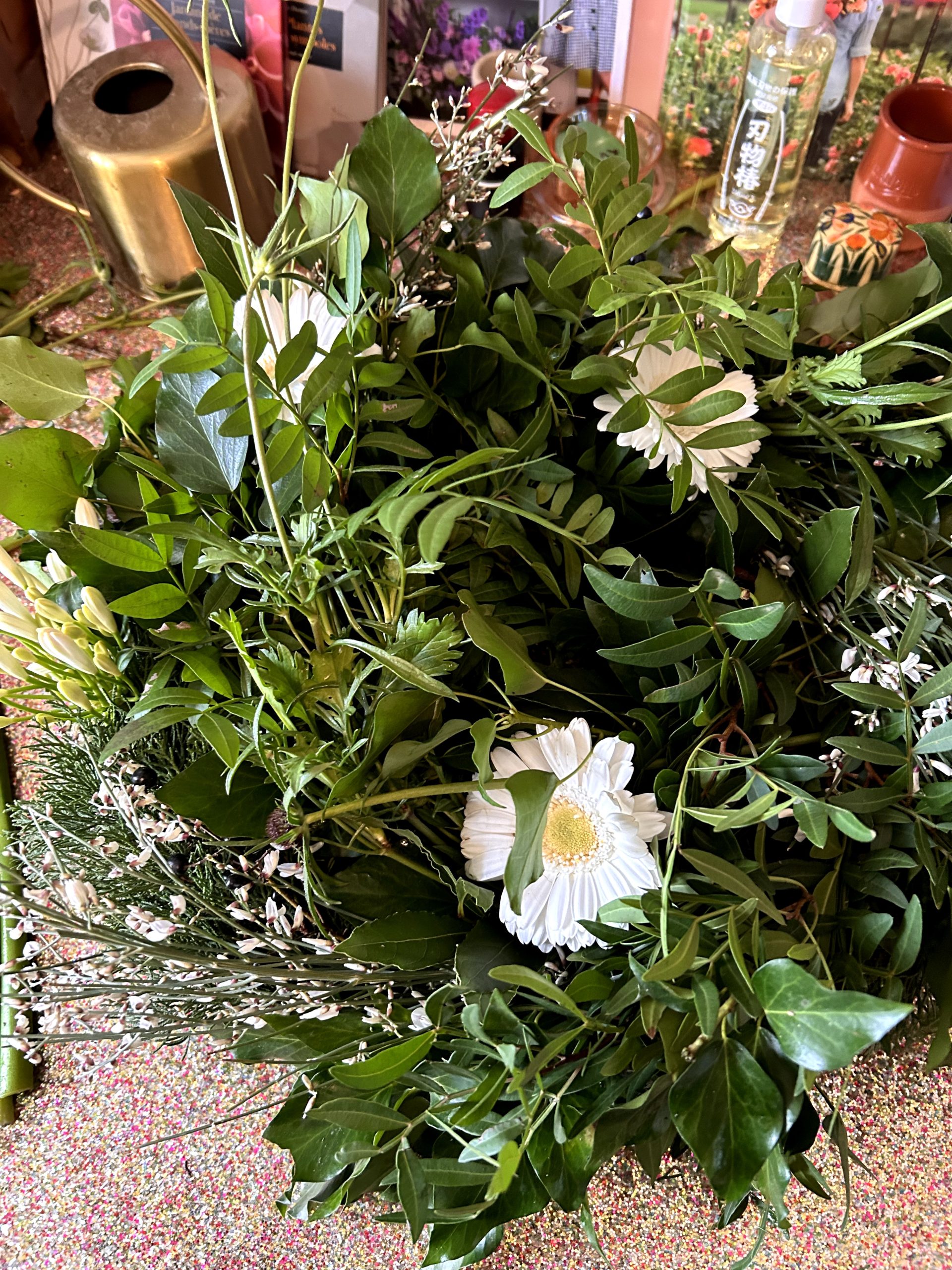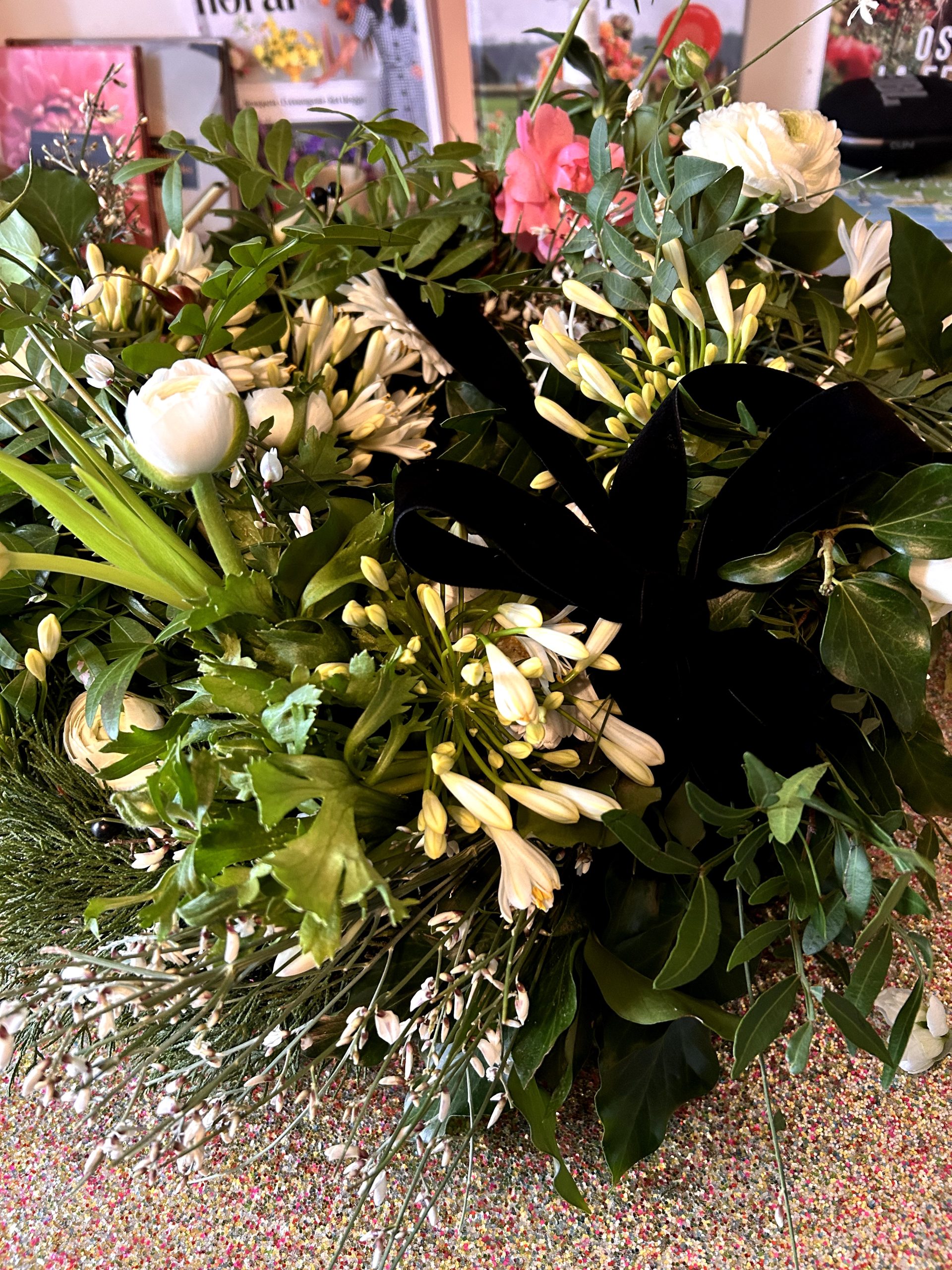 Elle peut être placée sur le cercueil, à l’entrée de la cérémonie ou sur la tombe, offrant un dernier adieu empreint de sérénité.