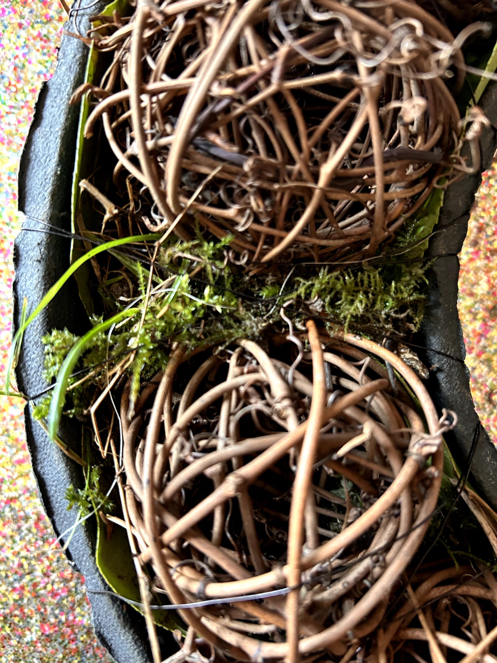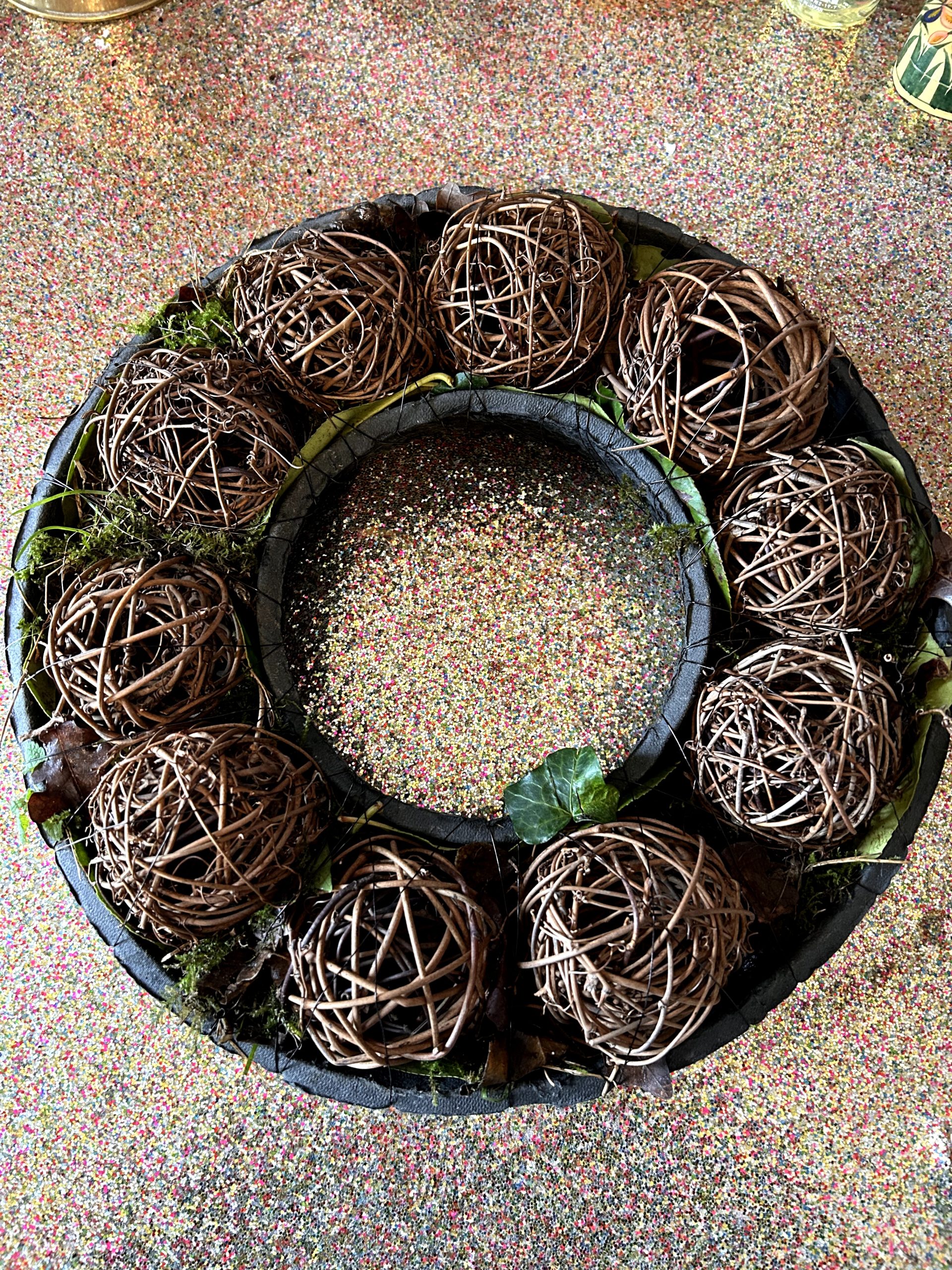 Chaque couronne est unique, réalisée sur une structure composée de carton mâché, bois tressé, mousse et fil de fer.
