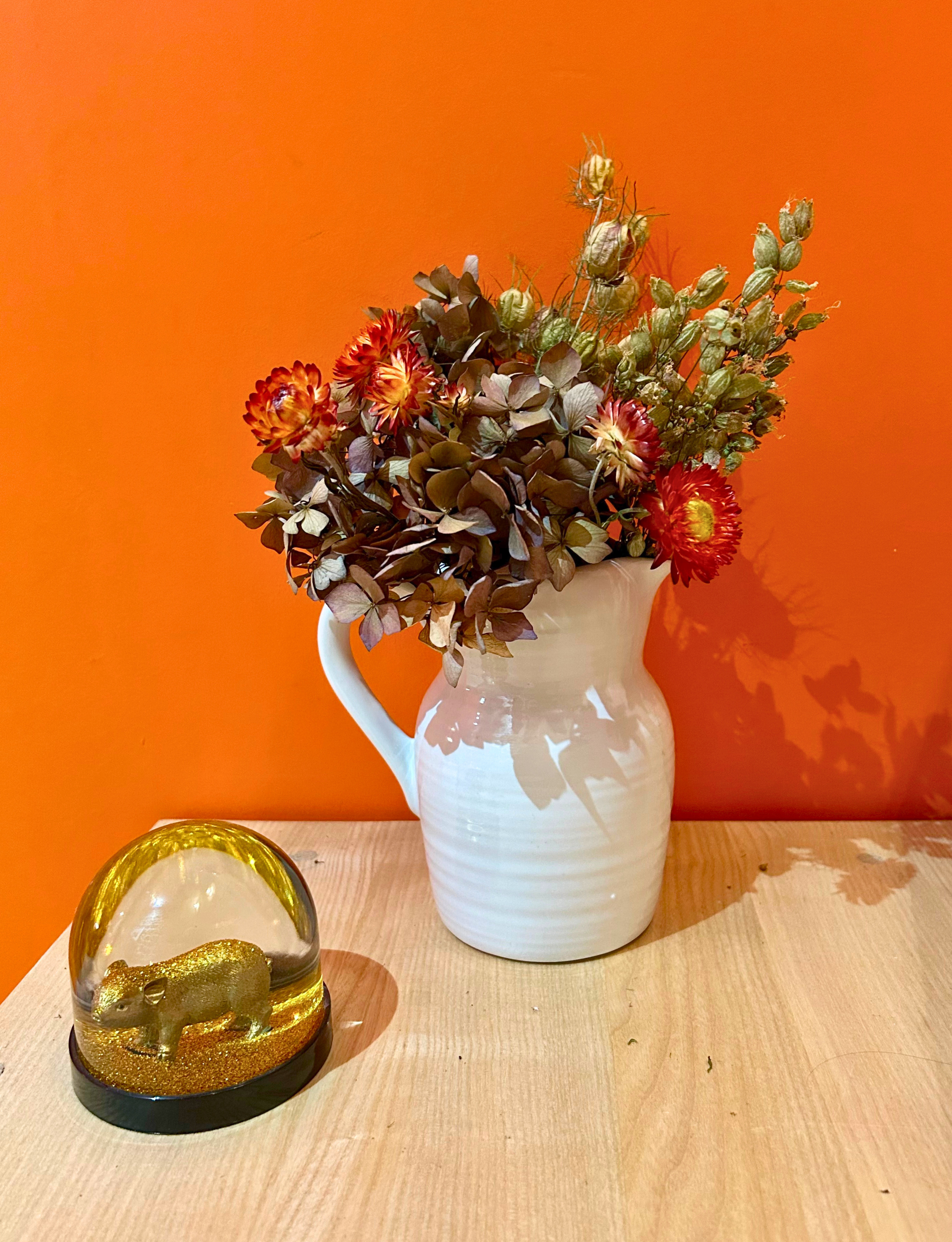 Le petit cochon pailleté sur la photo sert de repère pour que vous puissiez vous faire une idée de la taille des vases et des pots.